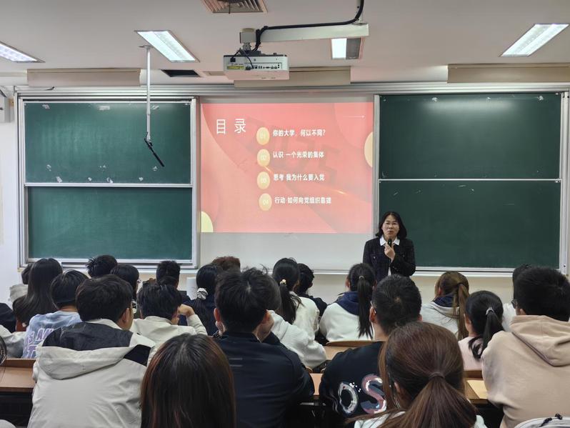 10月23日下午,人工智能学院在主楼B301教室举办“点亮信仰之光”新生入党领航专题党课。学院党委书记郭晓俐担任主讲,2025级新生代表共同参与,开启了一堂思想深刻、内容丰富的入党领航课。