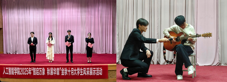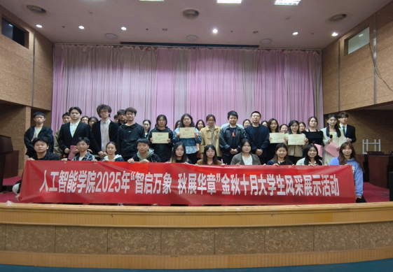金秋十月大学生风采展示活动是我院迎新系列传统活动之一,活动的圆满举办充分表现了青年大学生的组织协作能力,也展现出25级新生的青春个性风采。未来,人工智能学院将持续开展形式多样、内涵丰富的校园文化活动,在科技与人文的交融中为我院学子创造更多展现自我、互助成长的实践机会,让青春的活力与创造力在积极向上的校园氛围中持续绽放,为学院发展注入源源不断的青春动能。