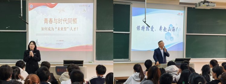 11月5日下午,人工智能学院于主楼B202教室举办“青春与时代同频——如何成为‘未来型’人才”主题讲座。中国联合网络通信有限公司盐城市分公司党委书记、总经理李宏立应邀担任主讲,学院党委书记郭晓俐主持活动。党委副书记姜琳、学工办主任毛阿璇及百余名学生代表参与交流。
