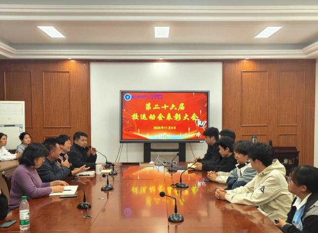 为表彰先进、弘扬运动精神,进一步激发全院师生参与体育锻炼的热情,人工智能学院于11月5日下午在学院楼会议室隆重举行第二十六届校运动会表彰大会。本次大会由辅导员戴笑天主持,学院党委书记郭晓俐、院长朱立才、党委副书记姜琳出席,全体运动员及志愿者代表参加会议。