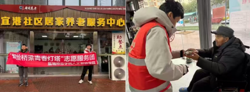 与此同时,学院青年先锋队启动“四城暖冬行动”,丁伟业、潘宇轩等同学在盐城、镇江、泰州、扬州同步开展敬老慰问。志愿者们为老人搬重物、整居所,普及冬季养生知识,组织棋牌、唱歌等文娱活动,耐心陪伴听力、视力欠佳或性格内向的老人,用真诚传递温暖。