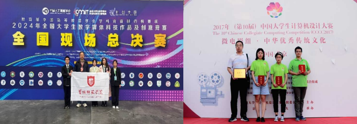 在指导中,他推行“双导师制”:本人主攻项目策划与技术攻关,同时引入企业工程师担任实战导师,实现校内学习与产业需求的无缝对接。近五年来,他直接指导的学生团队在国家级、省级竞赛中累计获奖二十余项,覆盖游戏设计、AI视觉、数字孪生等前沿领域。更可贵的是,他推动优秀竞赛成果向毕业设计、专利申报、创业项目转化,让赛场上的灵感真正走向产业应用。
