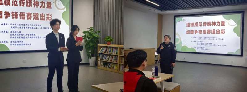 分享环节,多元艺术形式交织成精神传承的青春画卷。人工智能学院两名学子主动登台,深情朗诵原创作品《微光成炬——致敬“中国好人”田士华》,用同龄人的声音讲述身边榜样的平凡伟岸。当听到“你是一束光,照亮我们奔跑的路”时,全场掌声雷动。此外,家庭散文朗诵《足球的别名叫“冷门”》、医护人员的《新鹿试剑气干云》以及全国交通运输系统劳动模范孙伟的岗位自述,共同构筑起多维度、有温度的价值引领课堂。亭湖分局关工委刘婵在总结讲话中以《人生赛道争出彩》为题,勉励青年学生在各自赛道上奋力奔跑追求卓越。
