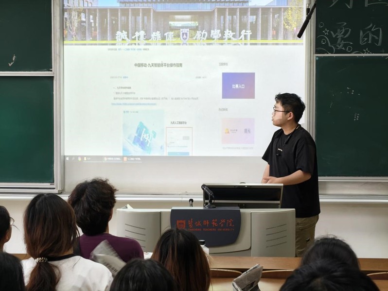 随后,杨喆宇同学介绍了首届人工智能艺术创作大赛相关事宜。大赛以“AI +艺术”为核心,征集绘画、设计、影像、音乐四类作品,鼓励同学探索人工智能在艺术领域的多元应用。